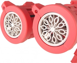 Spin up a sea of rainbow bubbles with this pink tripod bubble maker! Thanks to the adjustable tripod height, electric drive with rechargeable battery, and two interchangeable heads, it produces plenty of bubbles with no effort. A stable stand, comfortable handle, and 4 bottles of solution in the box ensure hours of joyful play outdoors or indoors.