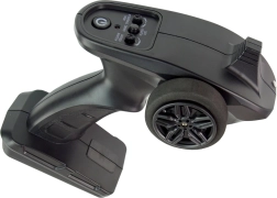 Ergonomic pistol-grip controller with a wheel enables smooth steering forward/reverse and sideways, speed selection, and autopilot activation.