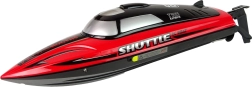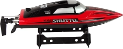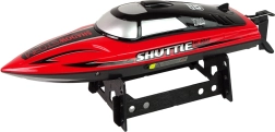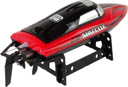 Experience adrenaline on the water with the red RC motor boat on a 2.4 GHz frequency. It offers 20–25 km/h top speed, autopilot, full forward/reverse/side control, and a durable plastic build. The box includes a battery with USB charger, an anti-collision cover, and a handy stand. Ideal for smaller bodies of water thanks to its compact dimensions of 35 × 9.5 × 11 cm.