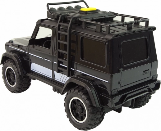 A realistic 1:14 scale off-road vehicle made of durable plastic brings plenty of fun both indoors and outdoors. It has opening doors, a removable ladder, and a battery-free friction drive. Large wheels handle uneven surfaces, and light and sound effects activated by the top button add atmosphere to playtime.