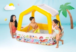 Enjoy summer in the garden with comfortable and safe bathing for the little ones. This INTEX children's pool offers a detachable canopy for shade, durable vinyl construction, and a handy drain valve. Thanks to the vibrant colors and cheerful graphics, kids will love splashing around.
