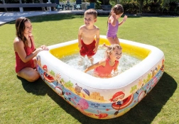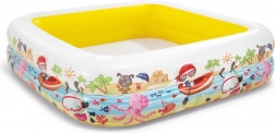 The INTEX inflatable pool with canopy is ideal for keeping kids cool in the garden during summer. Its square shape measuring 157 × 157 cm and 122 cm high provides ample space for play, while the 280 l capacity at a 20 cm water level ensures safe and comfortable fun. Durable vinyl (0.25 mm) and soft inflatable walls increase comfort and safety.