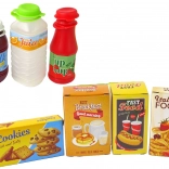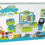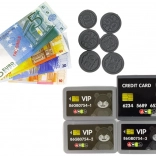The set includes money, cards, and various products, allowing children to simulate shopping and develop mathematical skills.
