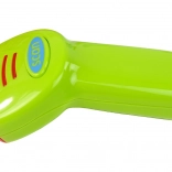 It contains various interactive elements such as a scale, terminal, and scanner. The toy is designed to support the development of manual skills and imagination.