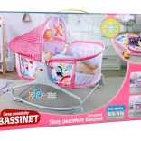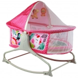 The multifunctional baby crib with swing 2in1 not only offers a comfortable space for sleep but also a pad and swing in one. The pink color creates a friendly environment for children and thanks to the net and canopy, it protects the child from insects and the sun, allowing a peaceful sleep outdoors. The ability to convert the swing into a stable crib by spreading the legs provides additional versatility.