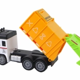 A realistic garbage truck with trailer that will delight little drivers. It features a friction drive, an opening trailer and top slot for dropping in “trash,” is made of durable plastic, and comes in 2 colors. Compact size 13 × 7 × 5 cm, safe thanks to CE and EN71 certification for children ages 3+.