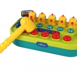 Kick off hammer‑tapping fun at home! After switching on, a cheerful melody plays and the red buttons light up at random. Your task is to hit the lit positions with the included hammer—this activates the chicks’ movement and earns you points. As your score grows, the game gradually speeds up, keeping the tension high and the laughs coming.