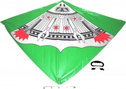 The flying kite with dimensions 110 x 72 cm is a great choice for every adventure lover in the fresh air. Thanks to its colorful motifs in red, green, white, and blue, it draws attention and adds the right spark to your outdoor activities.