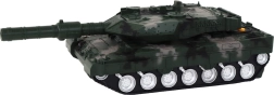 The RC tank is designed with detailed green camouflage that mimics a real military tank for realistic play.