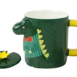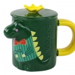 Mug with Green Dinosaur and Lid is designed with a playful and decorative theme ideal for children or dinosaur enthusiasts and has a volume of 400 ml.