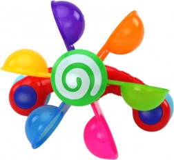 Our rotating bath toy offers 6 colorful bowls that spin when you pour water on them. The bowls are designed to encourage your child's creativity and imagination. With the help of suction cups, the toy can be easily and securely attached to the edge of the bathtub.