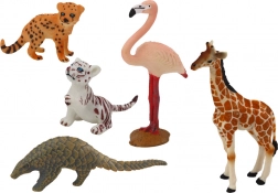 Discover the magic of nature with our set of animal figurines, which includes a giraffe, flamingo, two tigers, an elephant, and an armadillo. Each figurine is detailed and made from durable material for hours of fun.