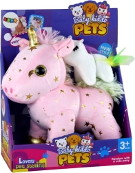 A cute plush unicorn with a melody is the ideal bedtime companion. Just pull the cord to start a gentle lullaby that creates a calm atmosphere. The ultra-soft material, pink design with golden stars, and safe workmanship make this toy a great nighttime aid and a nursery decoration. Includes a small sleeping unicorn as a cuddle buddy.