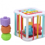 - Educational Sensory Cube: Connected by elastic bands, this fascinating toy engages the child's senses. Pushing blocks through the bands may seem challenging at first, but it's a great way to enhance thinking, combining, and creative problem-solving skills appropriate for the child's developmental level.