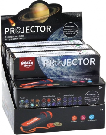 Enter the magical world of space with our projector that lets you explore stellar and planetary systems right from the comfort of your home. This portable projector includes three projection disks, each with eight different images, providing a total of 24 unique visions of the cosmos.