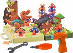 Children screw and unscrew individual dinosaur parts using a safe, easy-to-handle drill and tools—ideal for developing fine motor skills.
