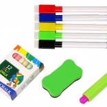 One side for classic chalk drawing, the other is wipe-clean for colorful markers—ideal for creativity and practicing school skills.