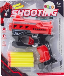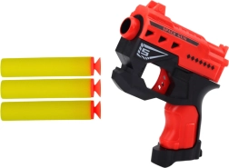 A fun and safe toy for kids: a mini foam dart blaster with suction darts in a striking red color. Lightweight design, easy operation by priming and pulling the trigger, and 3 suction darts for indoor and outdoor play.