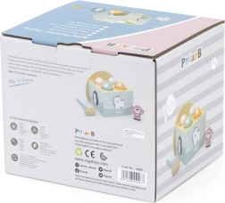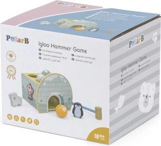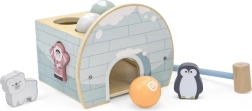 The children's toy Igloo by Viga is an excellent choice for toddlers. This versatile toy combines several activities: ball hammering, shape sorting, and play with figures. Through play, children develop fine motor skills, better coordination, and gradually skills like writing. The balls, when successfully struck by the hammer, shoot out of the igloo through small doors. If access to the inside of the igloo is required, the front panel can be removed.