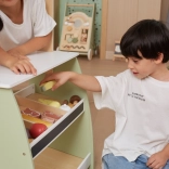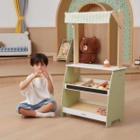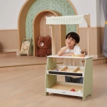 The wooden stand offers plenty of space for various kinds of toys, making it great for playing shop or vegetable market.
