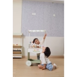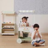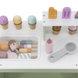 The large wooden ice cream stand is ideal for children who love to play shopkeeper. The stand is equipped with pretend ice creams and cones, which encourages creativity and motor skills development.