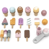 The stand features various types of wooden ice creams that allow children to create their own ice cream combinations.