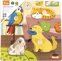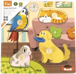 The wooden puzzle with a pet theme is a great tool for young children to develop their skills. Each piece has a special grip for easy holding and manipulation with small fingers. Thanks to vivid colors and fun illustrations, it supports animal recognition and learning through play.