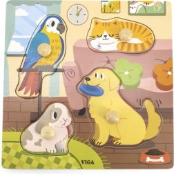 Discover the fun with a wooden puzzle, ideal for developing fine motor skills and learning about pets. Designed for children from 12 months, with safe handles for easy manipulation.