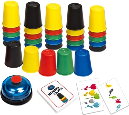 Fast Cups is a dynamic game that will surely bring laughter and fun to every household. The package includes 30 cups, a bell, 24 picture cards, and instructions, so you can start playing immediately.