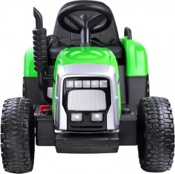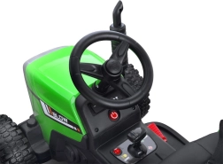 Children’s electric tractor with trailer and remote control brings lots of fun and supports motor skill development. It features a smooth start, light and sound effects, a music panel, and a comfortable eco-leather seat. Thanks to two powerful motors and the included remote control, riding is safe and enjoyable both indoors and outdoors.