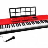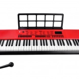 For beginners and young musicians, it offers 70 demo songs, a recording/playback function, adjustable tempo and volume, and a microphone input for singing. A clear display and included music stand ensure comfortable use at home, at school, and on stage.