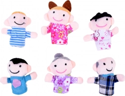 The set includes six finger puppets – grandfather, grandmother, mother, father, boy, and girl.