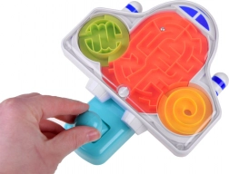 This smart toy allows kids to practice concentration, manual skills, and patience. The maze is made of plastic in attractive colors and features different sections in green, orange, and yellow areas. The task is to guide the metal ball from one part of the maze to another and back.