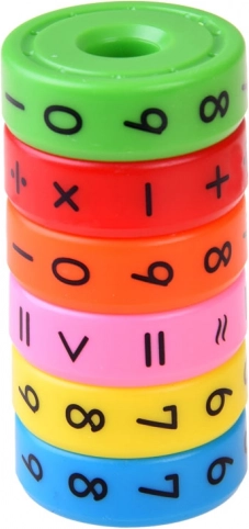 Six colorful magnetic rings allow children to create various mathematical operations.
