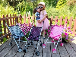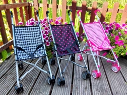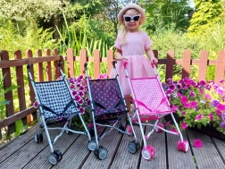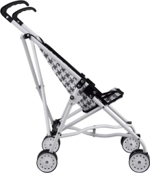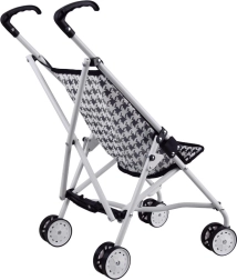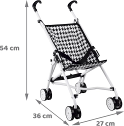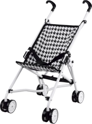 A lightweight and stable doll stroller in an elegant houndstooth pattern will delight every child. Thanks to the metal frame, smoothly rolling double wheels, and a safety belt, playtime is easy and safe. The stroller folds quickly, is easy to handle, and is perfect for everyday play at home and outdoors.