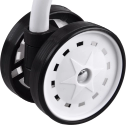 Swiveling double wheels ensure stability and smooth movement on various surfaces for a comfortable ride every time.