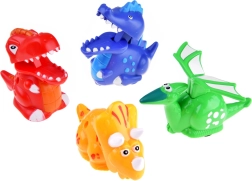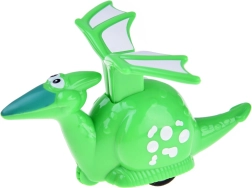 Each dinosaur moves forward after pressing a selected element (mouth, wings, or frill). Simple yet very entertaining action that invites kids to play again and again.