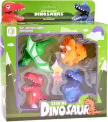In the box you’ll find a red T-Rex, a green pterodactyl, an orange triceratops, and a blue spinosaurus—perfect for races and themed role play.
