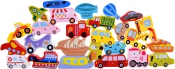 - Wooden educational puzzle with vehicles and letters