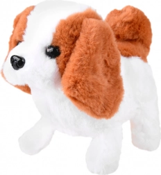 The puppy walks forward, barks, wags its tail, and when petted on the head it makes gentle puppy sounds — perfect for interactive play.