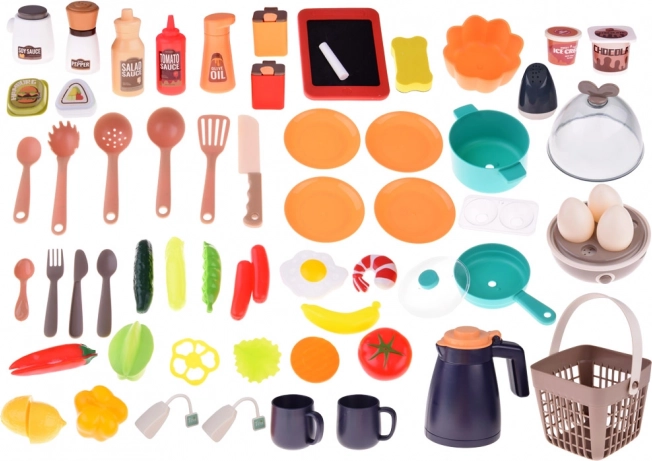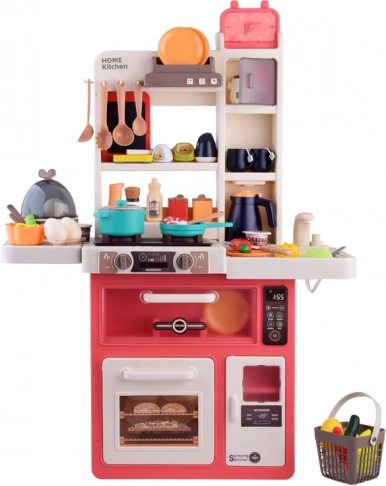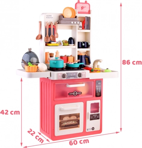 Kids’ play kitchen with steam, lights and sounds, fridge and accessories, 63 pieces