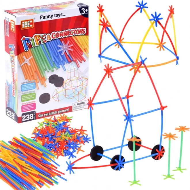 Discover endless building possibilities with a tube-and-connector set of 238 pieces. Thanks to the flexible plastic straws, multi-arm connectors, and foam wheels, kids can easily build 3D structures, geometric shapes, houses, or rockets. This creative toy develops fine motor skills, logical thinking, and imagination, keeping children engaged for hours.