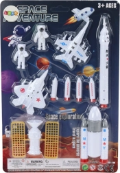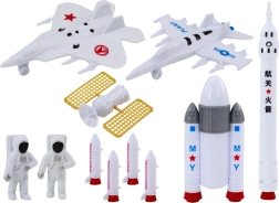 Astronaut Figures Set features astronaut figurines in unique space suits. Additionally, the set includes rockets of various sizes and shapes.