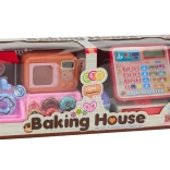 The cash register with a digital display allows children to engage in simple math games, adding educational value to this toy.