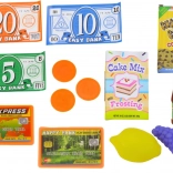 The set also includes a cash register, enabling shopping process simulation. The register is equipped with a digital display that supports mathematical tasks, such as addition and subtraction, thus promoting not only fun but also educational development.