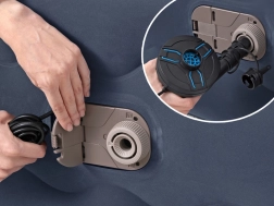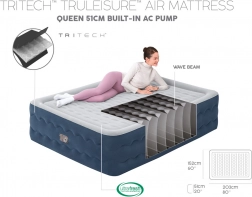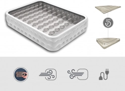 The integrated 220–240 V AC pump inflates and deflates the mattress in about 5 minutes. A hand/foot pump can also be used if electricity is not available.
