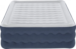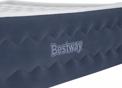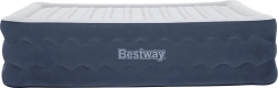 The BESTWAY double air mattress with Tritech technology offers stable support, a soft flocked surface, and a built-in electric pump for quick inflation in about 5 minutes. Ideal as a comfortable guest bed and for travel.