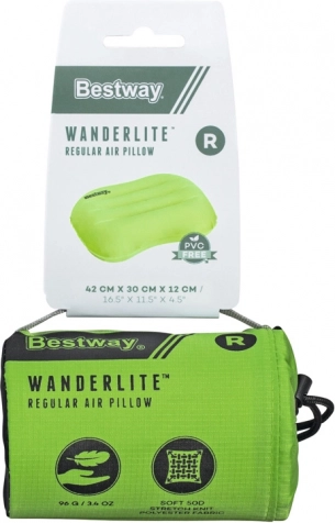 Inflatable Pillow Bestway WanderLite is made from durable ToughLite material and a soft, flexible 50D polyester knit. It is lightweight and doesn't take up much space, easy to fold and carry. Thanks to the cover, in which you can store it after each use, storage is simpler.
