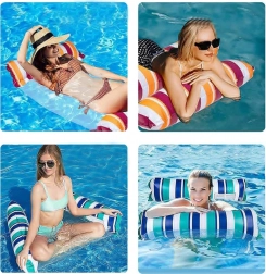 Discover fun and comfort with our inflatable hammock-style mattress for your pool or the beach. It’s ideal for relaxing and cooling off on hot summer days.