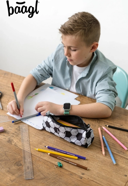 Baagl Case for Writing Supplies featuring a football design, ideal for students looking for a stylish and practical solution for storing pens and pencils.
